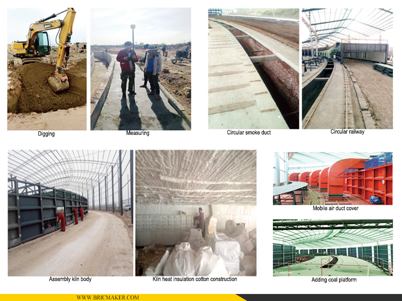 Rotary tunnel kiln, referred to as ‘rotary kiln’ for short, is an improvement and upgrade of tunnel kiln. Its biggest feature is that the brick stack does not move while the kiln body rotates. The kiln body is all made of steel structure and runs along a circular track. From front to back, it is divided into drying section, preheating section, roasting section, heat preservation section and cooling section. The billet splitting machine runs in the same direction as the kiln body, and stacks billets while splitting them. The rotating and moving kiln body moves forward intermittently on the track, the front section "eats" the bricks, and the rear end "spits out" the finished bricks and completes the whole process of drying-preheating-roasting-cooling-bricks in sequence.
