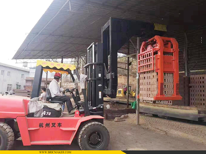 The forklift type brick grabber is reformed based on forklift. It is used to grab piled bricks from kiln car directly or on the exit site of rotary kiln. So the fired red bricks still not be packed in into pallet. Most of the fired bricks are removed by manual work. So this brick grabber could save lots of man power and improve the efficiency. Besides, the cost is much lower than automatic robot. No matter the brick factory adopts tunnel kiln or rotary kiln, this brick grabber could adapt to the production plant flexibly.