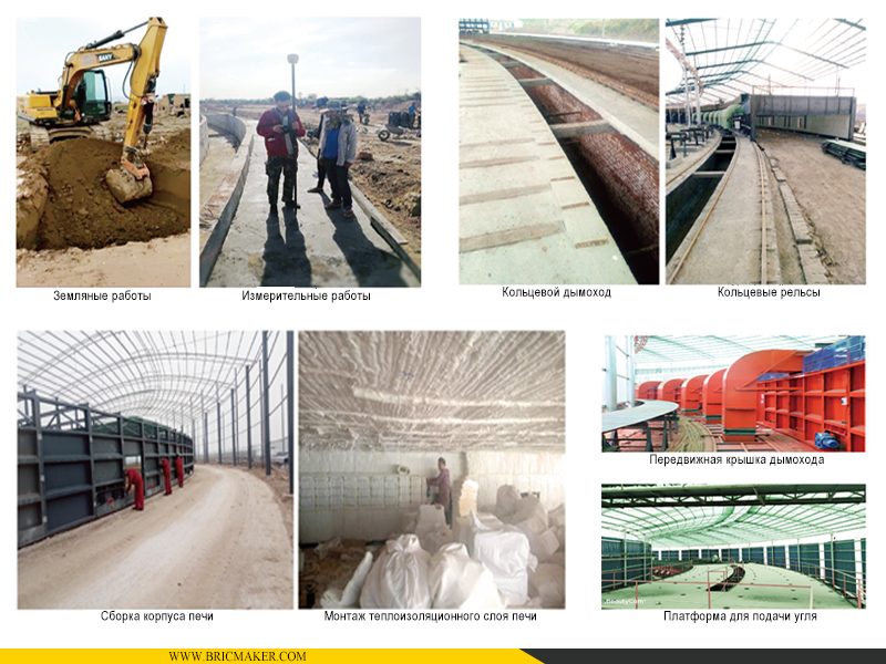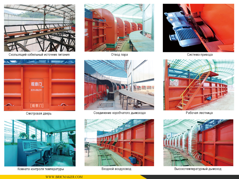 Вращающаяся тоннельная печь, сокращенно «вращающаяся печь», является усовершенствованной и модернизированной версией тоннельной печи. Её главная особенность заключается в том, что при вращении корпуса печи стопки кирпичей остаются неподвижными. Корпус печи выполнен полностью из стальной конструкции и движется по круглой рельсовой дорожке. Вся печь разделена на пять основных зон: зона сушки, зона предварительного нагрева, зона обжига, зона выдержки и зона охлаждения. Система укладки заготовок кирпичей синхронизирована с направлением корпуса печи, что позволяет укладывать заготовки с одной стороны и одновременно продвигать их вдоль печи, обеспечивая выполнение всех процессов: сушка, предварительный нагрев, обжиг и охлаждение.