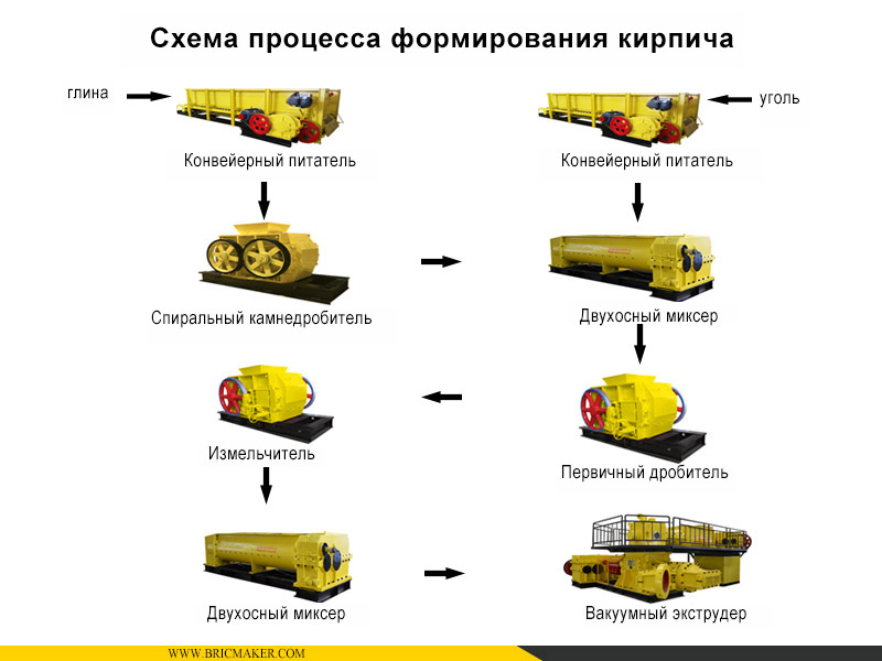 Эта автоматизированная линия для производства красного кирпича использует глину и уголь в качестве сырья для изготовления обожженного красного кирпича. Сырье предварительно дробится и подвергается тонкому измельчению, после чего подается в вакуумный экструдер.