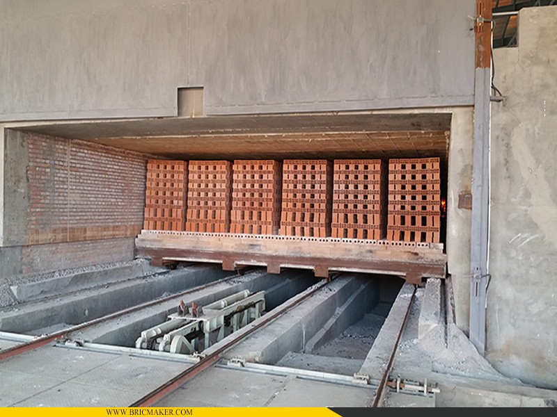 The thermal process adopts tunnel kilns with 3.6m width, one drying tunnel and one firing tunnel. Each kiln car is loaded with 7296 pcs bricks. Every 50 minutes, the kiln output one car’s bricks. Every day, the firing kiln output 29 cars red bricks.